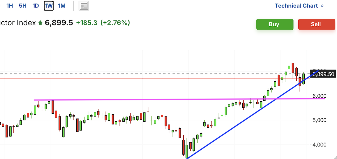 费城半导体指数:费城半导体指数此前震荡上行并一度大幅上涨,随后出现回调并跌破趋势线。近期连续几日反弹,显示资金重新关注半导体板块。短期仍有波动,但整体走势保持活跃,半导体作为 AI 与科技产业的重要环节,市场关注度较高。