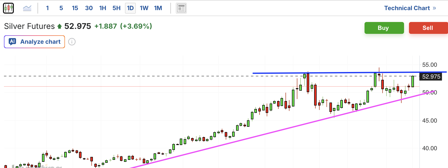 黄金与白银:黄金与白银此前经历一波上涨后出现回落,近期有止跌迹象。白银两次触及高位,若能突破阻力区间,可能带来新的走势。贵金属的表现体现了市场在避险与成长逻辑之间的平衡。