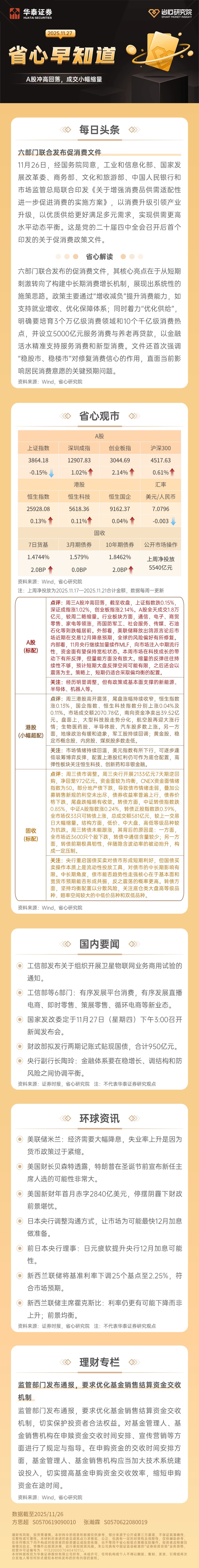 1127省心早知道——A股冲高回落,成交小幅缩量