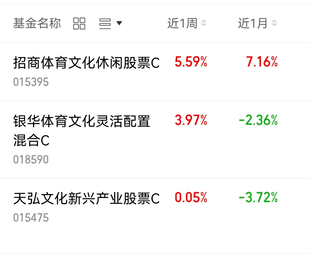 $招商体育文化休闲股票C(OTCFUND|015395)$近一周涨幅5.59%
