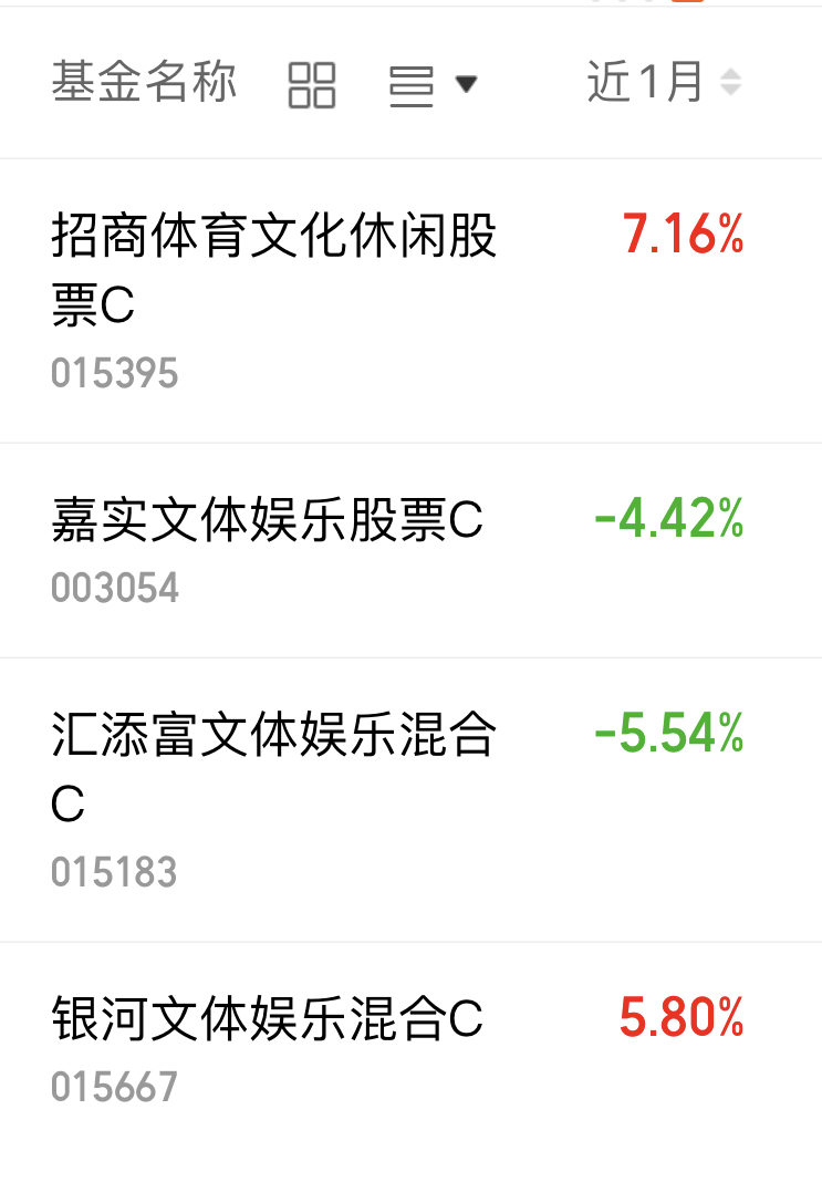 $招商体育文化休闲股票C(OTCFUND|015395)$近一月上涨7.16%