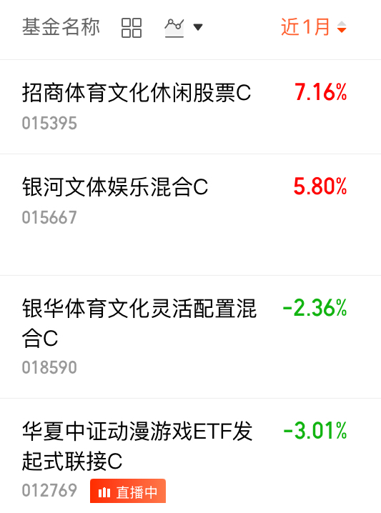 $招商体育文化休闲股票C(OTCFUND|015395)$,近一月+7.16%