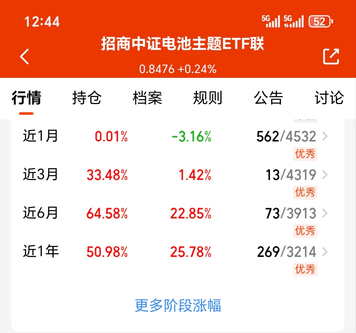 今日A股市场继续延续上涨趋势,个股涨幅高达3200家,固态电池集体走强,同时需求与技术的双轮驱动下,电池赛道仍有十足的成长空间,同时电池级碳酸锂报价飙升,这波涨价潮直接带飞产业链,并且宁德时代在2027年预计实现全固态电池小批量生产,进一步加速电池产业化提升,而我看好的$招商中证电池主题ETF联接C(OTCFUND|016020)$聚焦电池全产业链,目前持续估值稳定上涨,我也将继续拿住了!