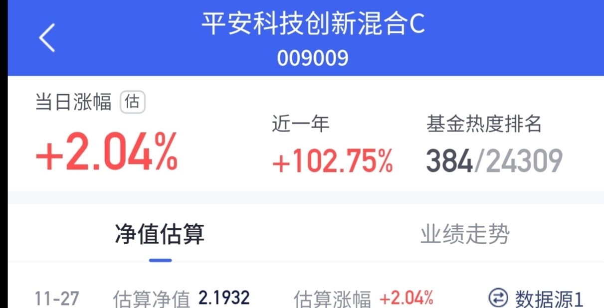 今日权益市场表现火热,整体上行,科技板块延续强势表现,CPO概念领涨市场。我关注的$平安科技创新混合C$昨日大幅上.扬后, 今日盘中估值再度上涨2.04%。近一年收益率已实现翻倍,在同类基金中业绩表现突出继续看好它的上涨空间