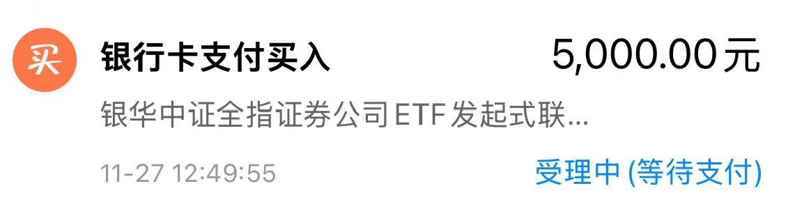 我加仓$银华中证全指证券公司ETF发起式联接C(OTCFUND|025194)$5000。