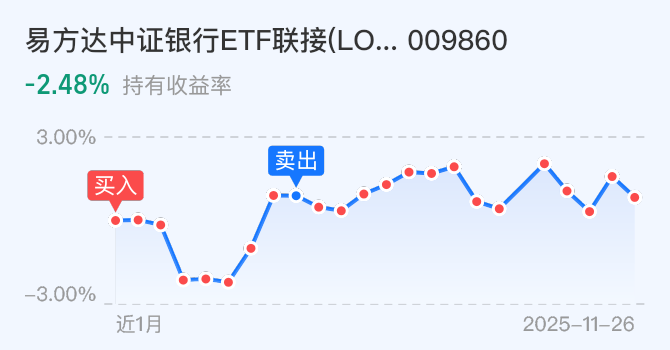 银行:银行指数震荡,这个小君作为对冲配置的,我的定投继续中了。$易方达中证银行ETF联接(LOF)C$