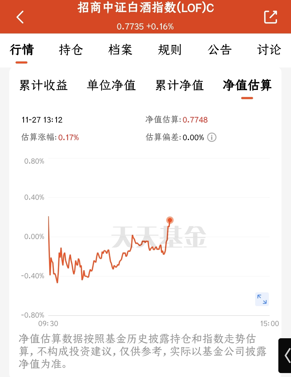 今天白酒表现不错,探底回升。临近年底,消费板块近期逐渐回暖,白酒作为关键领域备受关注。春节临近,旺季需求预计带动行情升温,龙头品牌盈利稳健,节前备货和消费复苏双重推动下,白酒有望走势向好。我打算分批布局,定投加仓,短期可把握春节行情,长期持有亦稳妥,适合稳健布局。白酒指数基金$招商中证白酒指数(LOF)C(OTCFUND|012414)$持仓都是消费龙头企业,结合消费趋势与定投优势,有望获取收益。