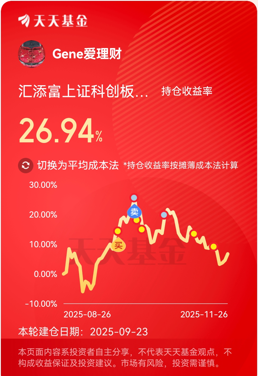 个人持有收益率26.94%,业绩杠杠的,权益市场波动是正常,分批建仓才是天选打法,跌了别慌,低位吸筹;涨了稳住,慢慢兑现。