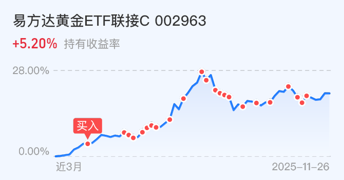 个人管住手,不动躺平中。$易方达黄金ETF联接C(OTCFUND|002963)$