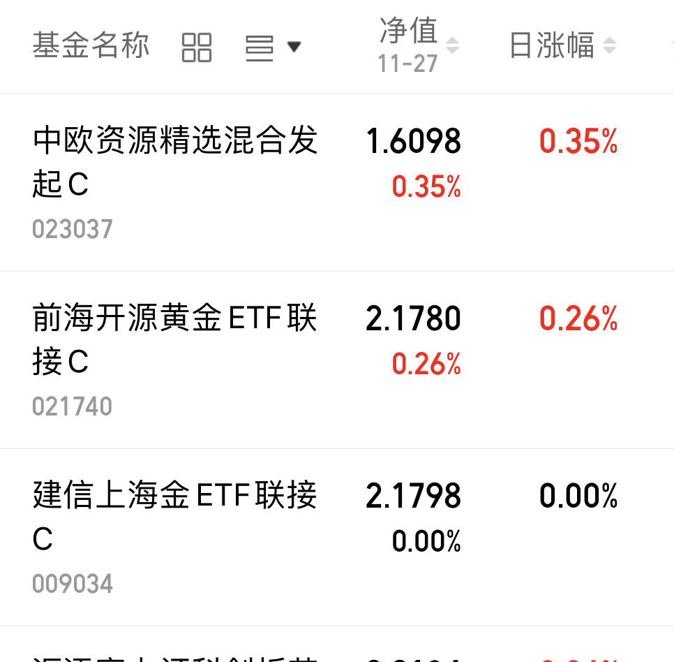 $前海开源黄金ETF联接C(OTCFUND|021740)$今晚上涨0.26%