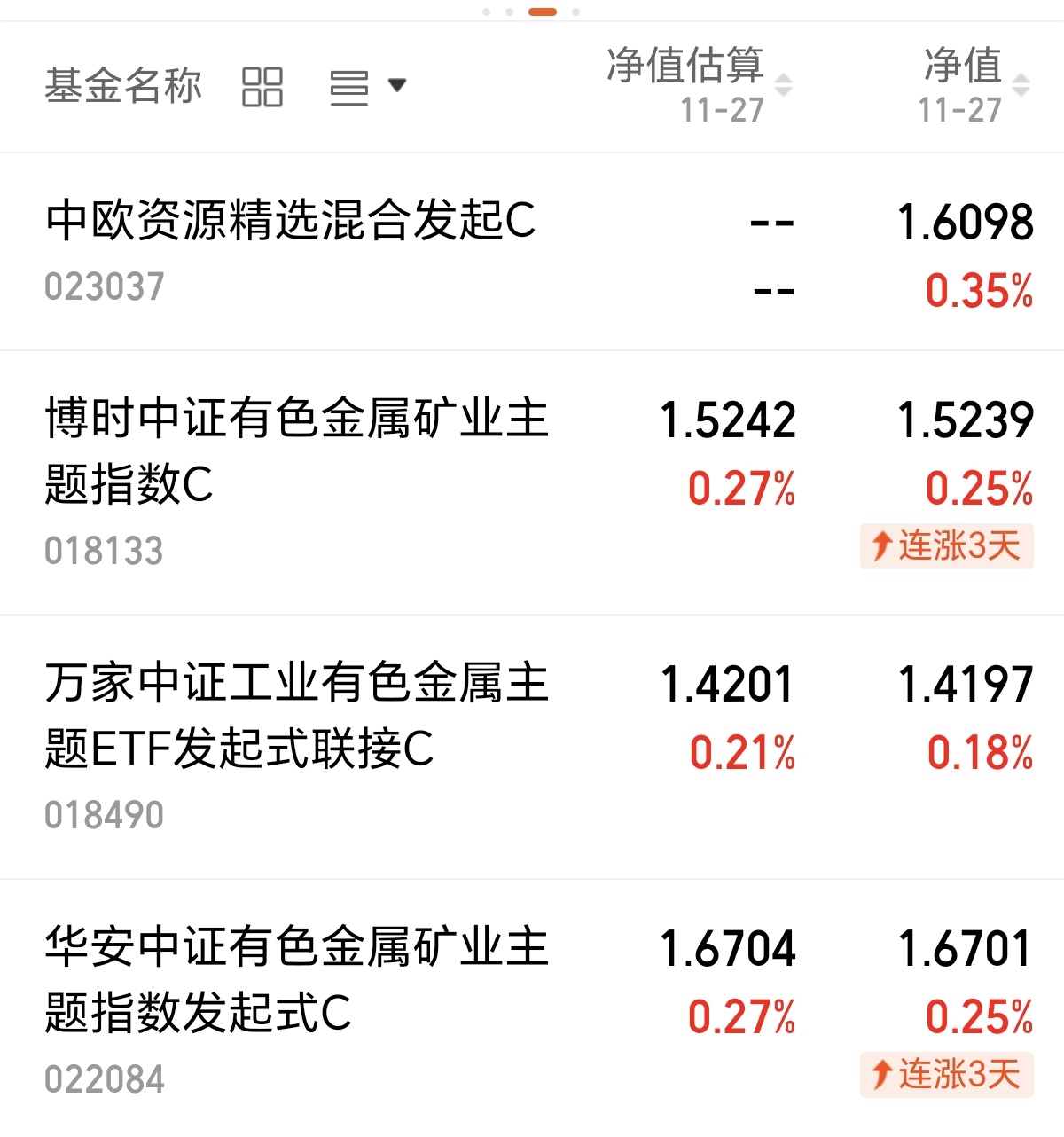 $博时中证有色金属矿业主题指数C(OTCFUND|018133)$涨幅0.25%