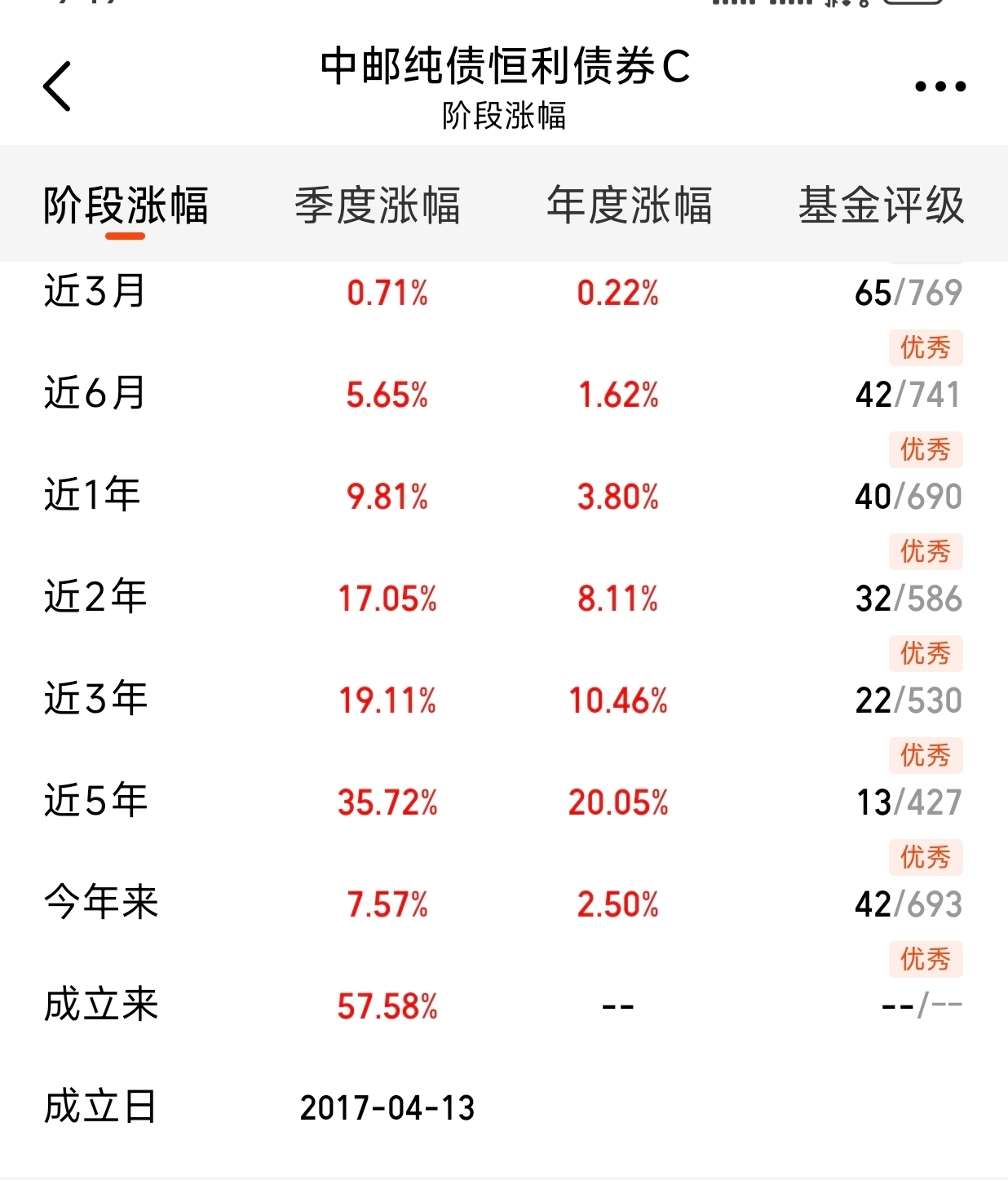 我在#3800点的A股值得加仓吗?# 选择了“不值得” 有子弹,低位加仓肯定是很合适的,但是混债也是低位了,更符合要求吧,$中邮纯债恒利债券C$ 波动小,费率低,主要就是主投可转债和纯债,没有股票
