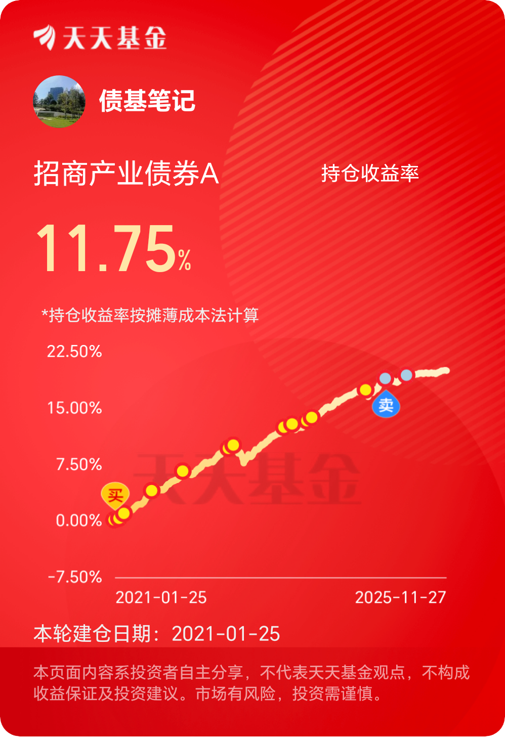 股市低开后,现在也翻红了,二级债基收蛋有保障了,今天预计是股债双收的一天。如果今天收红,那么债基组合-风起天阑就是连续11个月正收益了。
