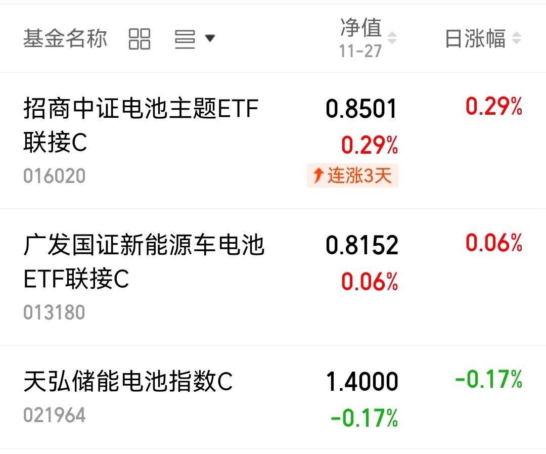 $招商中证电池主题ETF联接C(OTCFUND|016020)$昨日涨幅0.29%