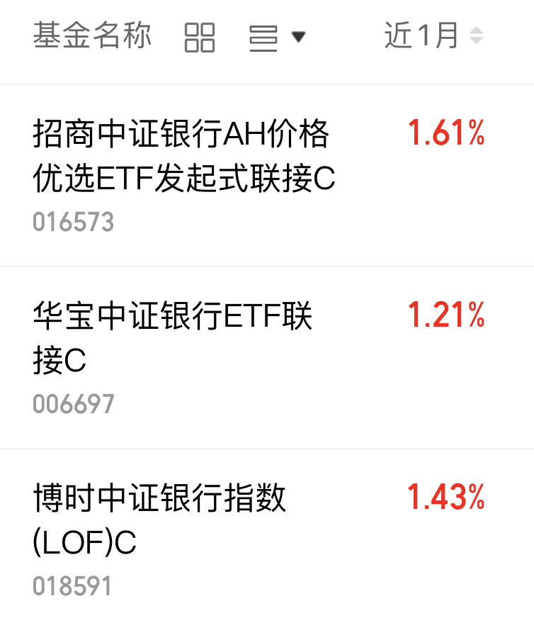 $招商中证银行AH价格优选ETF发起式联接C(OTCFUND|016573)$近一月涨幅1.61%