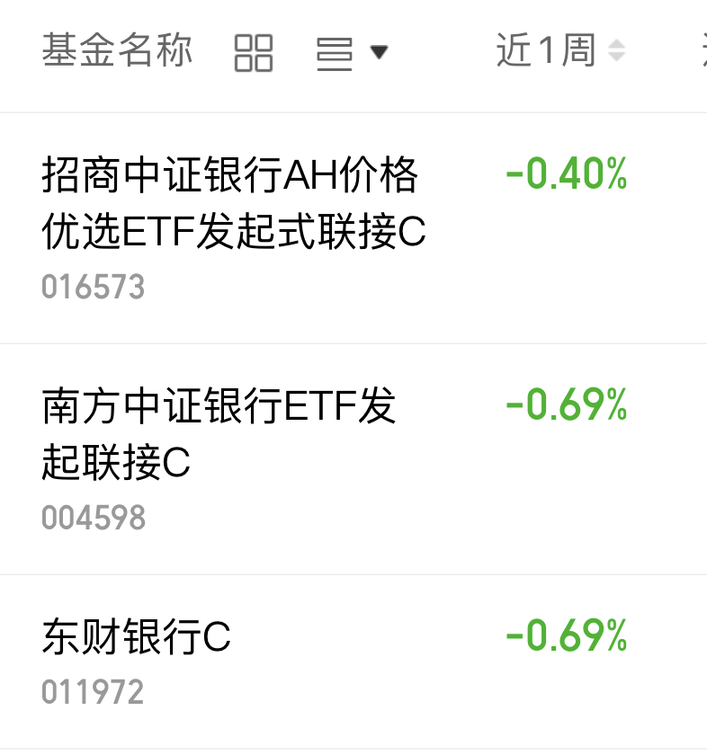 $南方中证银行ETF发起联接C(OTCFUND|004598)$近一周下跌0.69%