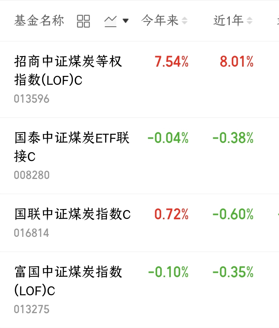 $招商中证煤炭等权指数(LOF)C(OTCFUND|013596)$近一月涨幅8.01%,表现不错