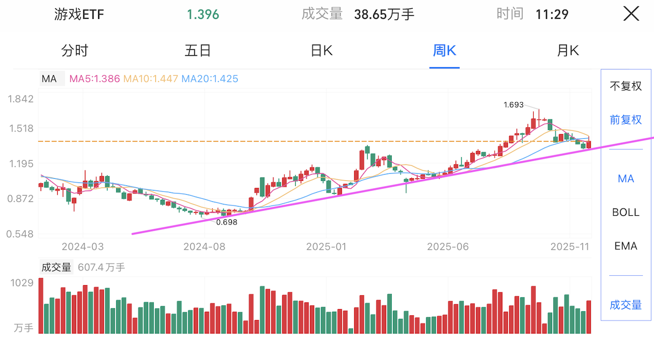 人形机器人、游戏:整体处于中长期震荡上行格局。近期经历一波快速上涨后出现回调,跌至关键趋势线附近,随后出现反弹。尤其是游戏板块伴随成交量放大,短线有企稳迹象,但能否延续仍待确认。