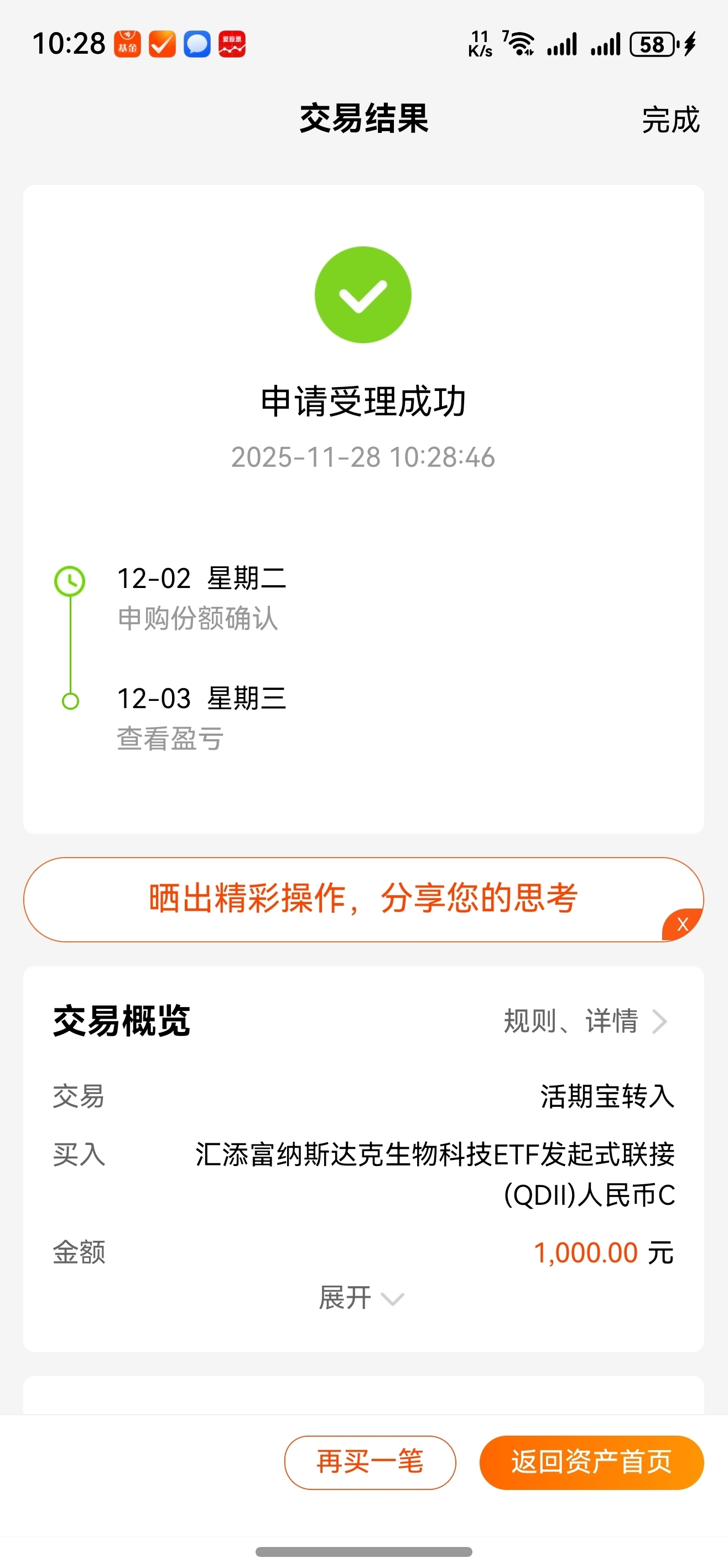在今天,我个人继续考虑选择加仓某个美股纳斯达克生物科技指数qdll基金。