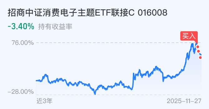 我加仓$招商中证消费电子主题ETF联接C(OTCFUND|016008)$5000。这是只消费电子指数基,一键打包了消费电子上下游产业链,更精准捕捉由AI驱动的消费电子换新周期!本周多部门联合发布促销费方案中明确了要促进AI+消费普及,给予了消费电子中长期政策护航。