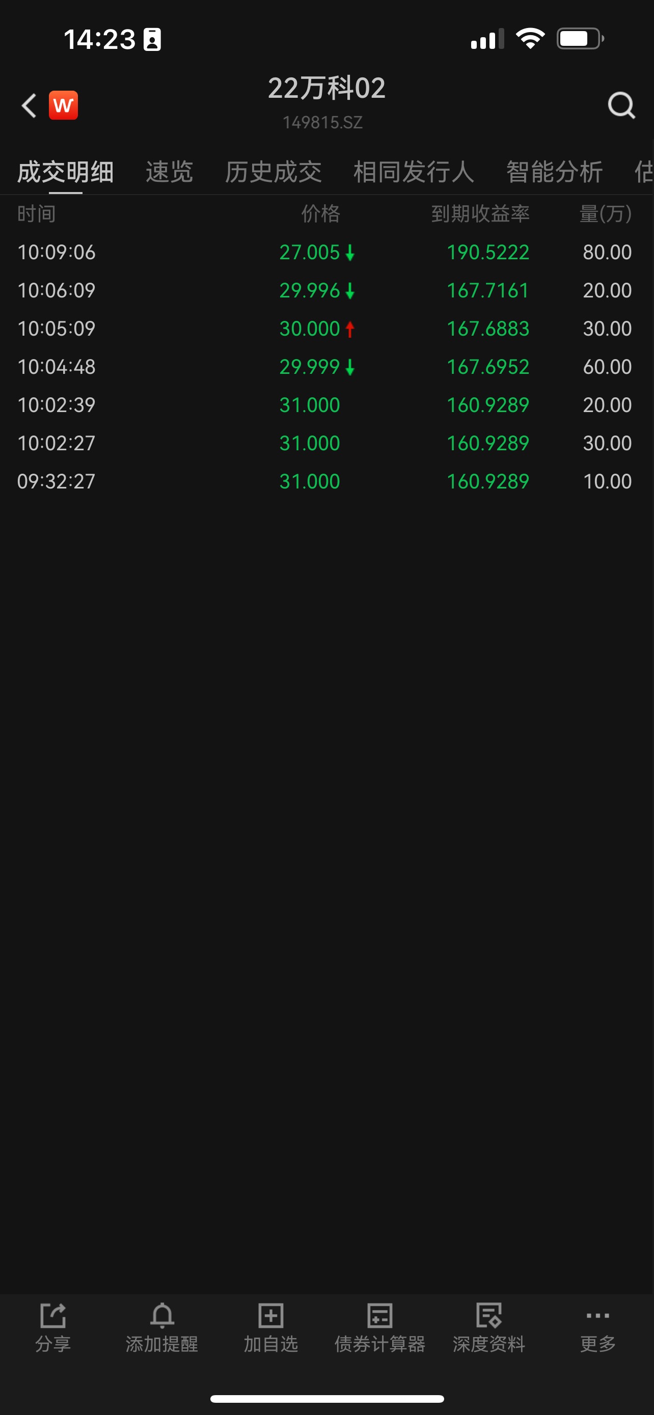 100块钱的$万科A sz000002$ 债,现在27块卖了哈