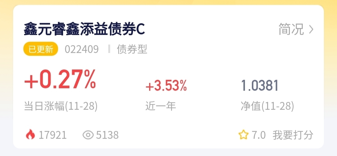 $鑫元恒鑫收益增强债券型发起式E$ 收蛋21个,挺不错的