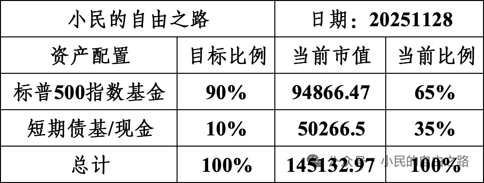 4.每月定投:每月第一个交易日投入增量资金,按9:1的比例分别投入标普500指数基金与短期债券基金。