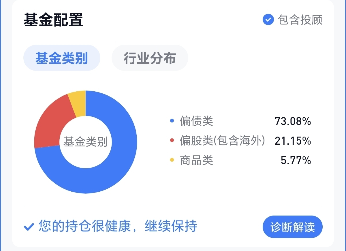 所以说,还是仓位失衡。下面是三分法的结构。