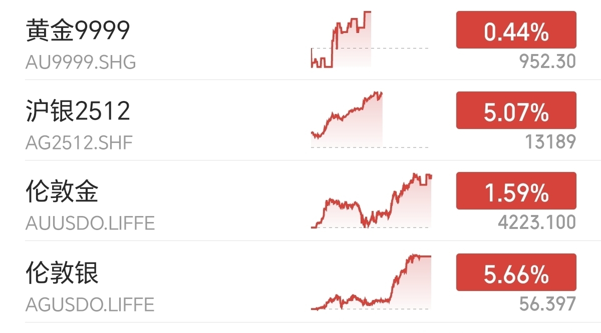 伦敦金上涨1.59%,价格冲上4200美元。伦敦银暴涨5.66%,价格突破56美元,到了历史新高。
