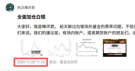 《全面加仓白银》一篇是在上周四,11月20日发的。