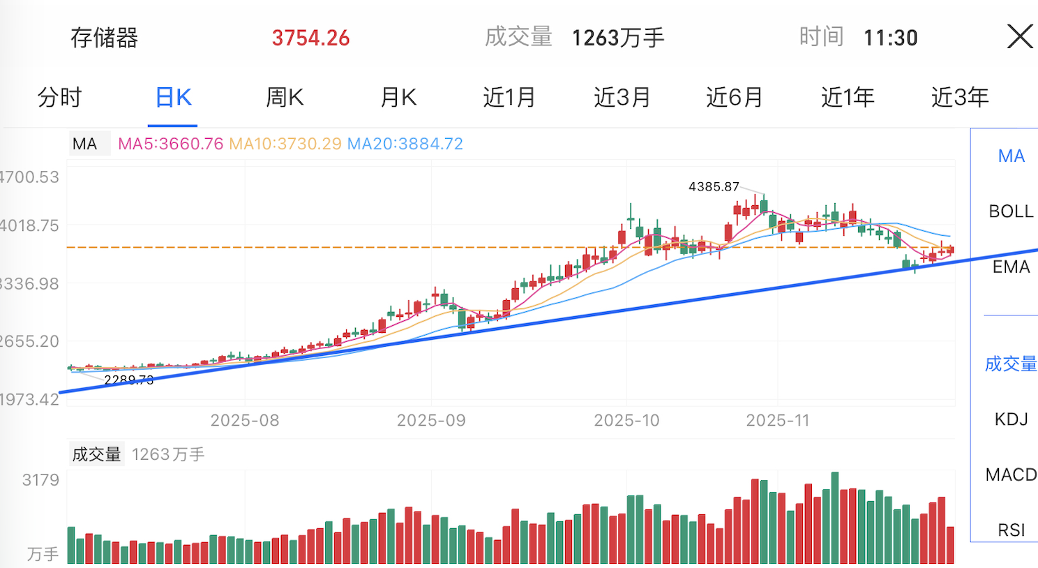 存储芯片:经历大幅回调后,板块在中长期趋势线附近企稳,成交量同步放大,修复动力初显。资金持续性是关键:若龙头股延续反弹,板块有望重拾强势;若资金跟进不足,则可能继续横盘整理。