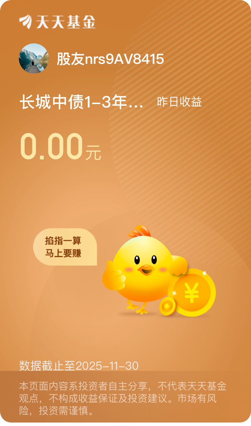 #11月基金投资策略# $长城中债1-3年政金债A$ #晒收益#