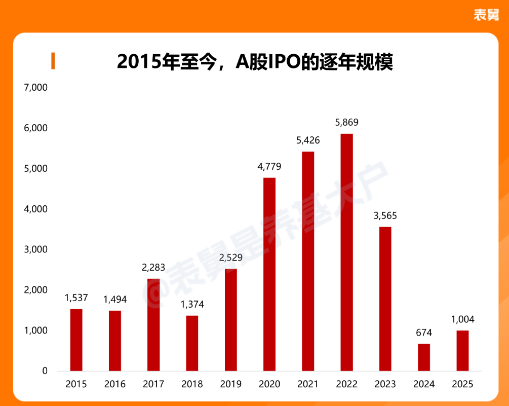 下图,是最近10年,A股的IPO规模,可以看到,截至最新,2025年内的A股IPO已重新突破1000亿,虽然仍然处于低位,但环比明显抬升。