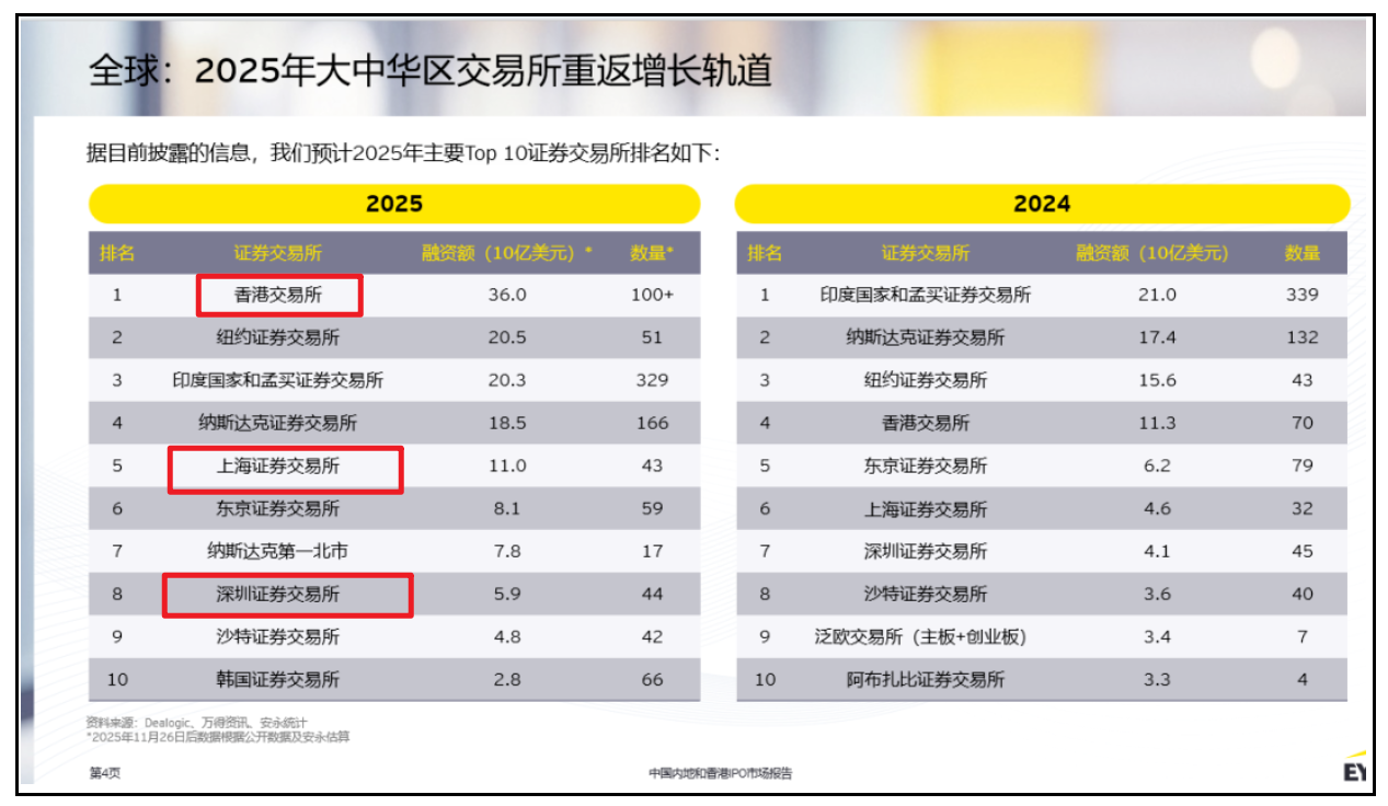 如果我们加上港股的话,下图,港交所、上交所、深交所,分别位列今年全球交易所IPO规模的第一、第五、第八位,可以这么说,考虑到港股的IPO里,很大一部分是帮A股消纳的,因此可以说,内地企业的二级市场融资,正在加速恢复。