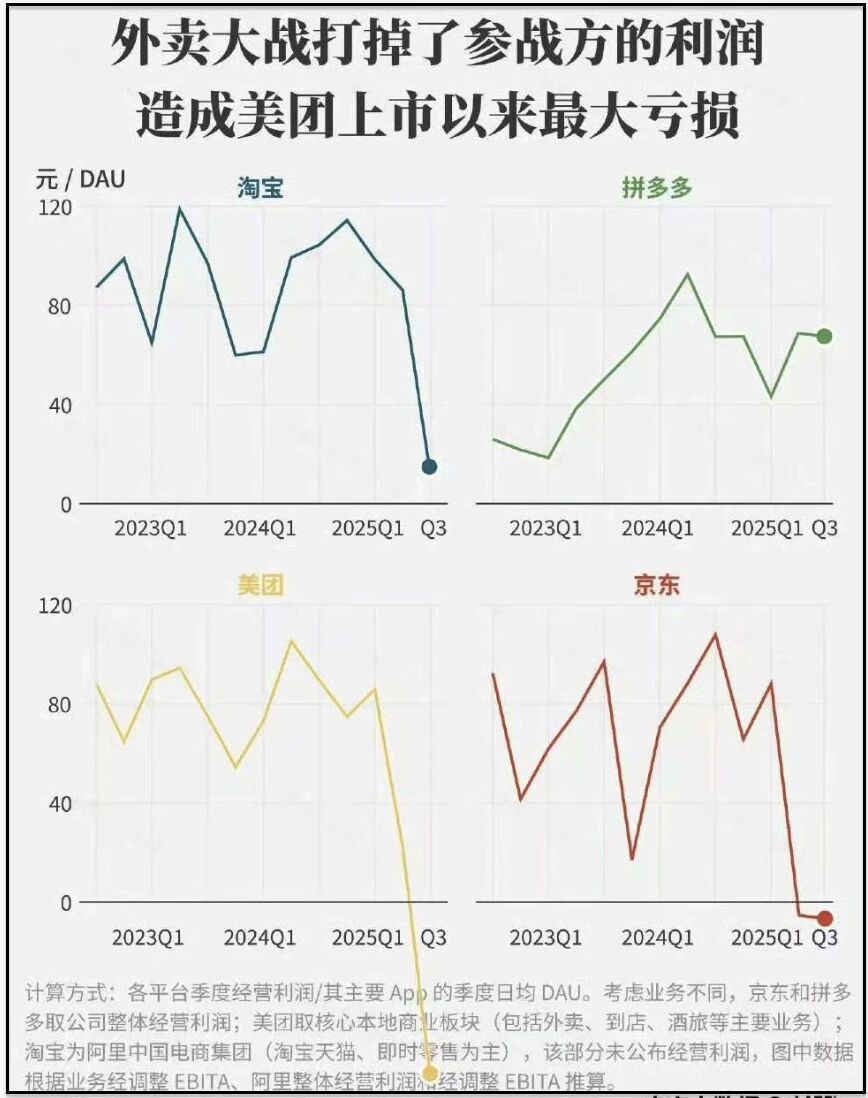 有媒体做了一张图,美团单位用户的盈利表现(经营利润/app日活),下图,直接跌出了图表之外。