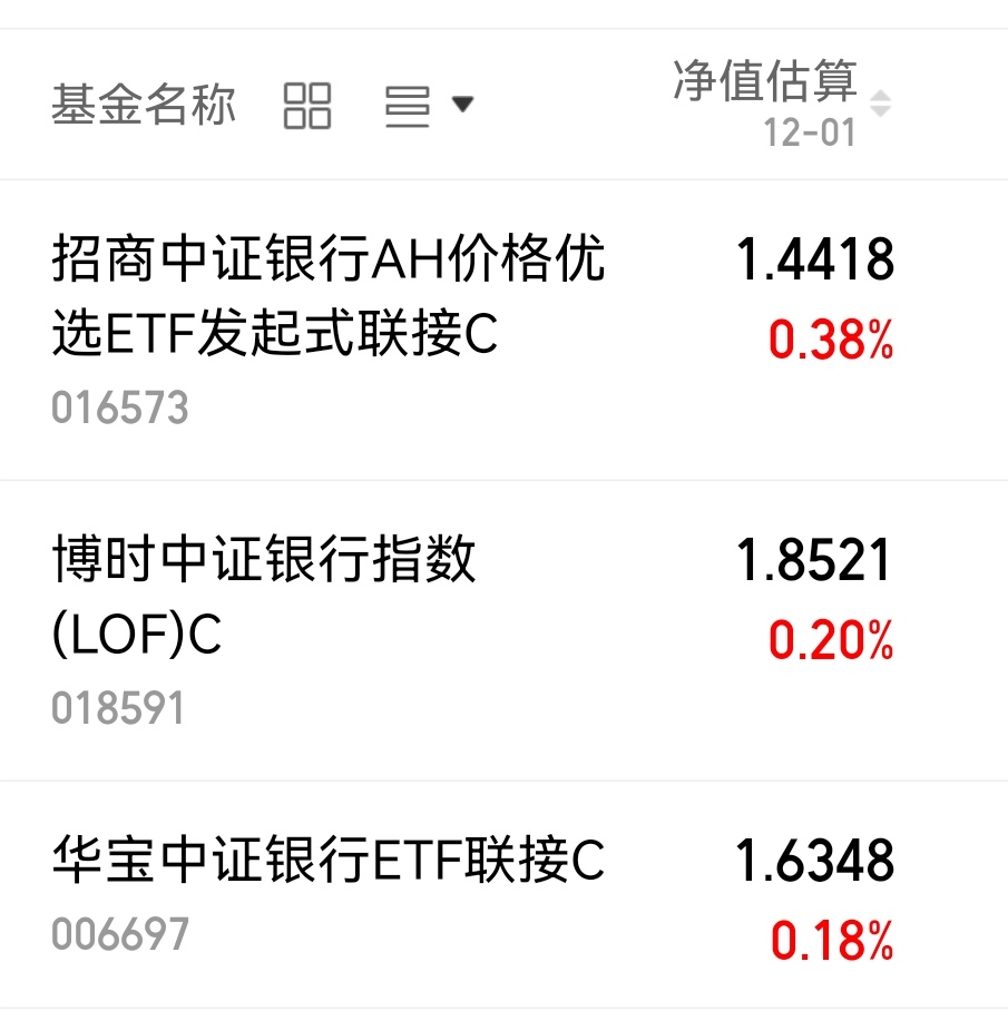 $招商中证银行AH价格优选ETF发起式联接C(OTCFUND|016573)$预计涨幅0.38%