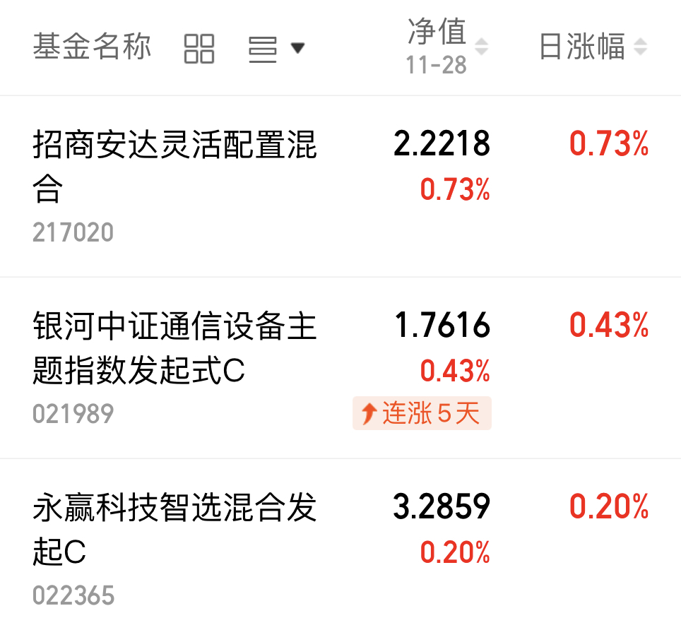 $银河中证通信设备主题指数发起式C(OTCFUND|021989)$上周五上涨0.43%