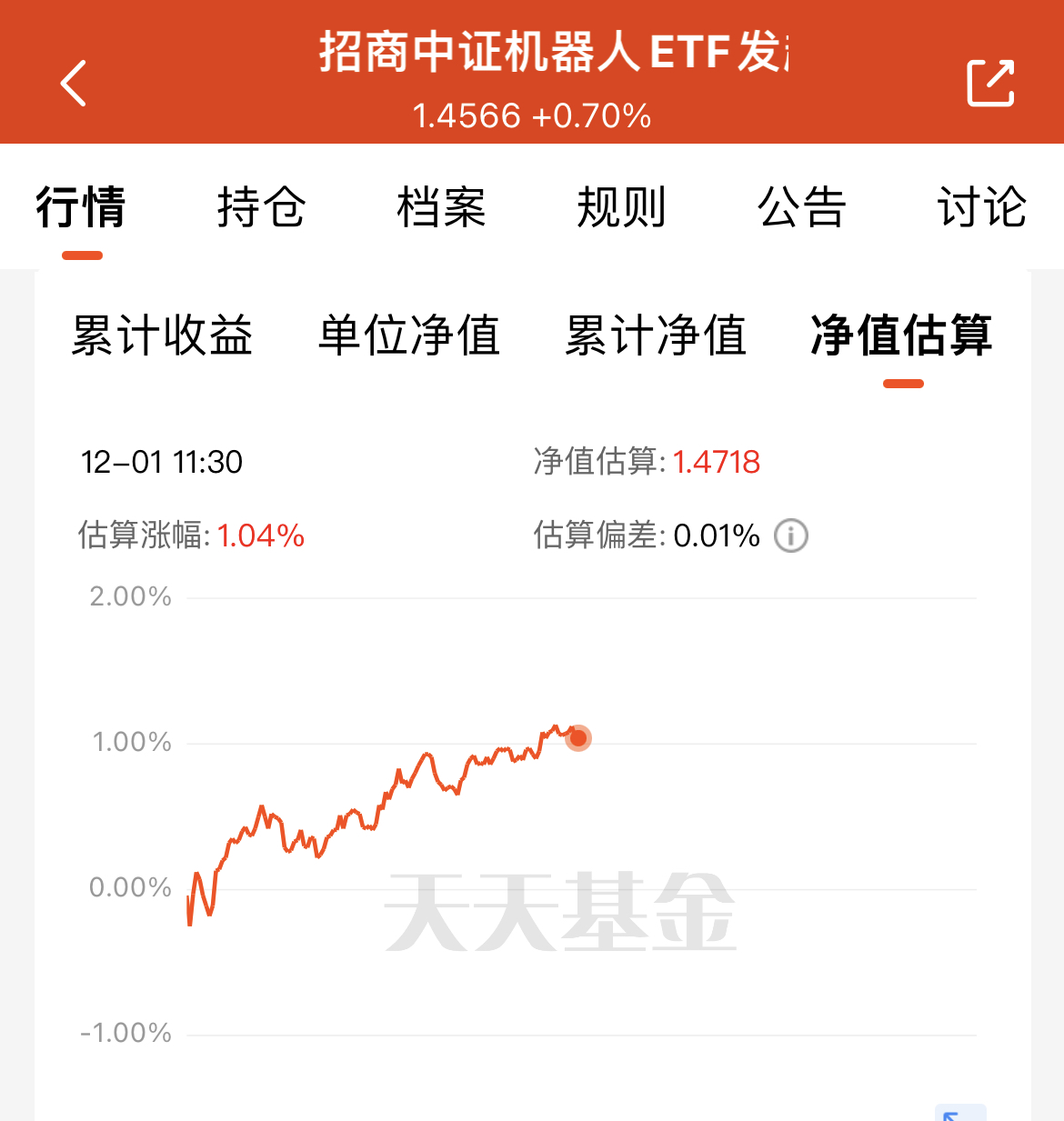 我打算布局$招商中证机器人ETF发起联接C(OTCFUND|020482)$,它聚焦机器人全产业链,实时估值稳步上涨,现在右侧布局正好能跟上这波产业红利。