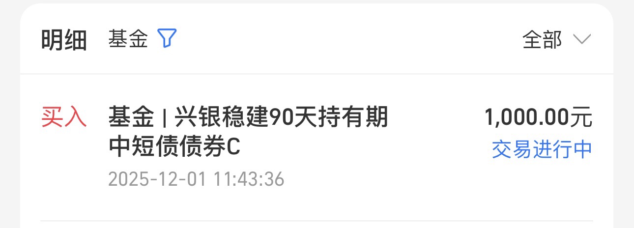 $兴银稳建90天持有期中短债C$ :小王今日继续红包1000-0.8上车,一上车就送8个蛋,我觉得真不错呀,我也最喜欢红包上车啦;这是我选择的稳健的底仓基金,底仓基金我还是比较喜欢稳,并且在此次的回调中塔也是展现出较好的回撤水平,我觉得我的眼光也是不错的,对于该基金我就不用担心回调的到来,我只是希望它每天安安稳稳的收蛋就行;从最新的第三季度持仓来看,该中短债基金以信用债为核心持仓,杠杆策略效果显著,再叠加上基金经理的优秀操作,该基金也是涨得多碎得少的基金类型,我也比较信任基金经理的能力,近一年的收益率也已经达到了2.71%,这样优秀的收益再加上目前的行情,我觉得配备稳建的中短债基金是一个不错的决定呢,今天我继续定投上车啦