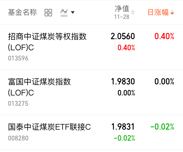 煤炭相关热门基净值播报