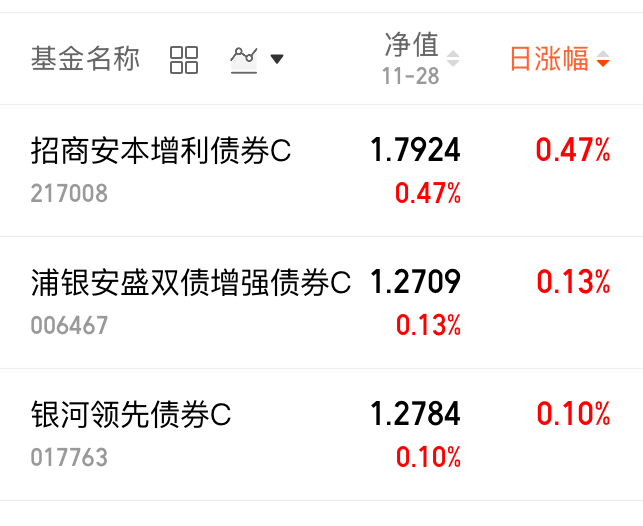 股市周末利好不断,今天如期高开高走,债券这边整体晴天为主,综合行情来看,近期混债表现不错,来看部分基的净值概况吧!