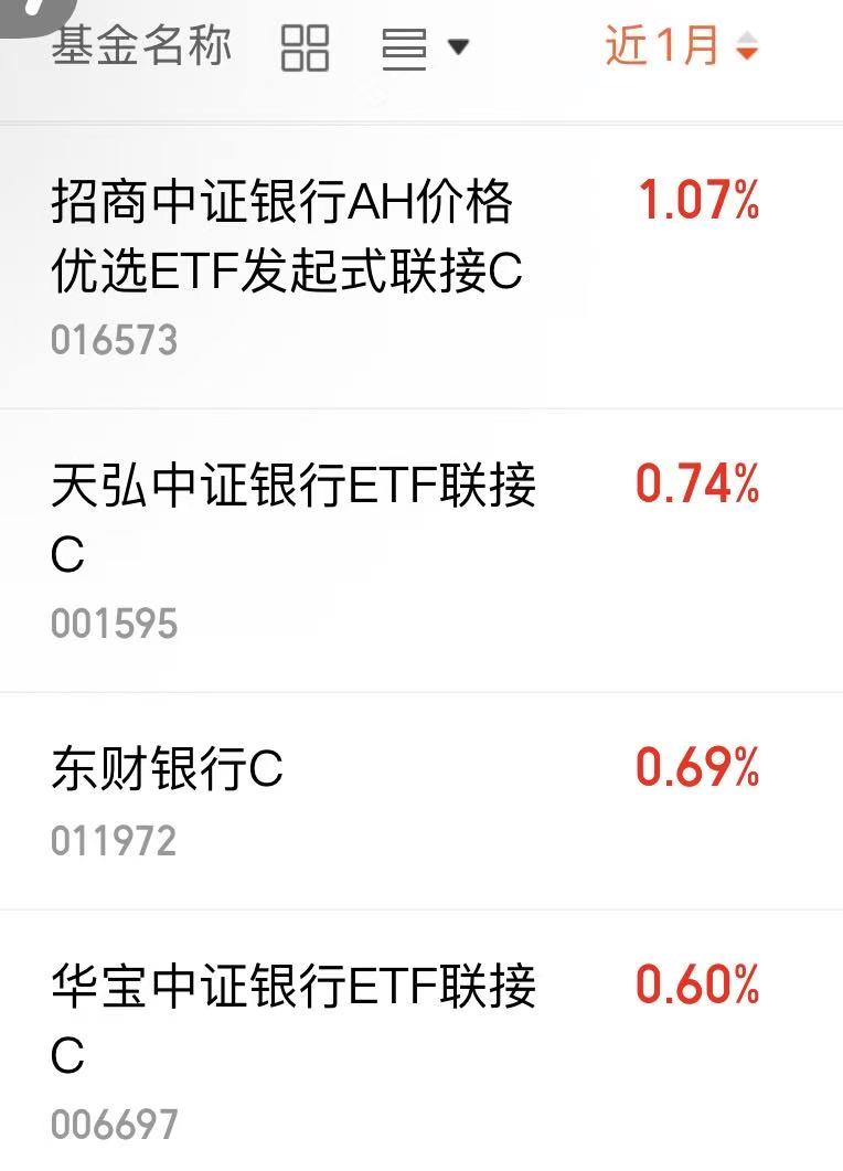 $招商中证银行AH价格优选ETF发起式联接C(OTCFUND|016573)$近一月+1.07%,这个可以动态选择AH的低价,比较划算。