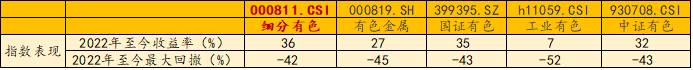 3、收益率表现更优:2022年至今,中证细分有色金属产业主题指数累计收益率同类领先,且最大回撤同类更低,投资体验更好。