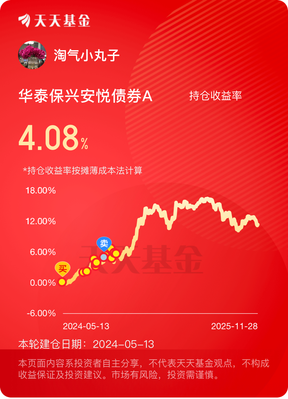#12月基金投资策略# 债市强势反弹,整体向好。华泰保兴安悦整体来看走势可以的,继续加仓吧$华泰保兴安悦债券A$ #晒收益#