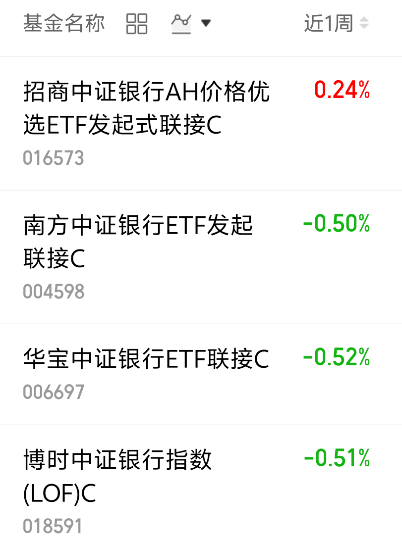 $招商中证银行AH价格优选ETF发起式联接C(OTCFUND|016573)$近一周涨了0.24%