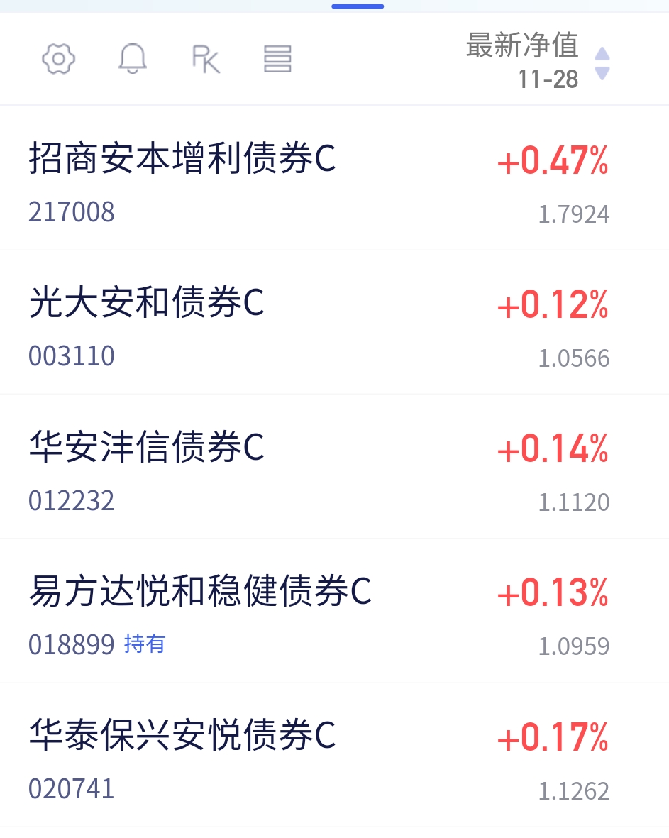 $光大安和债券C$ 上周五产蛋12个,很不错哦