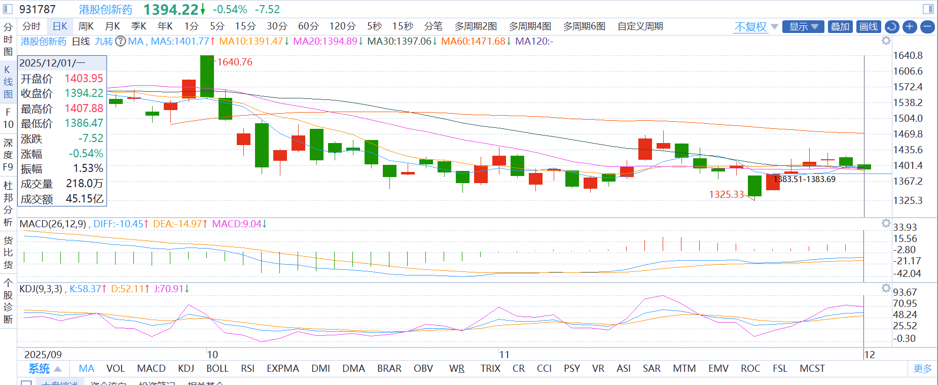 恒生科技:技术面回踩10日线支撑有效,MACD马上绿转红,金叉呼之欲出,短期形成反弹趋势。消息面上,美联储 12 月大概率“降息+鹰派指引”,港股流动性先行受益。麦爸持仓看涨。