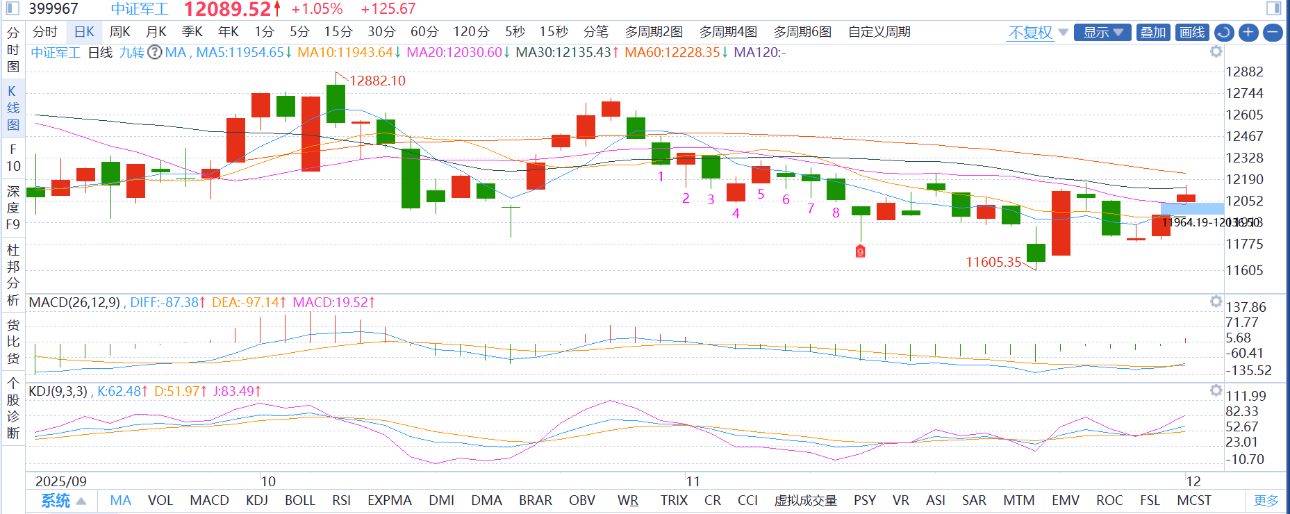 军工板块:商业航天是军工的重要分支,今日表现极其强势。国家设立商业航天司并发布行动计划,是强有力的政策驱动。技术面日线MACD金叉红柱,回踩20日线支撑有效。麦爸选择右侧加一笔。