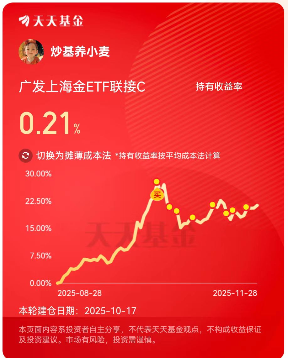 黄金:加仓1000的$广发上海金ETF联接C(OTCFUND|008987)$