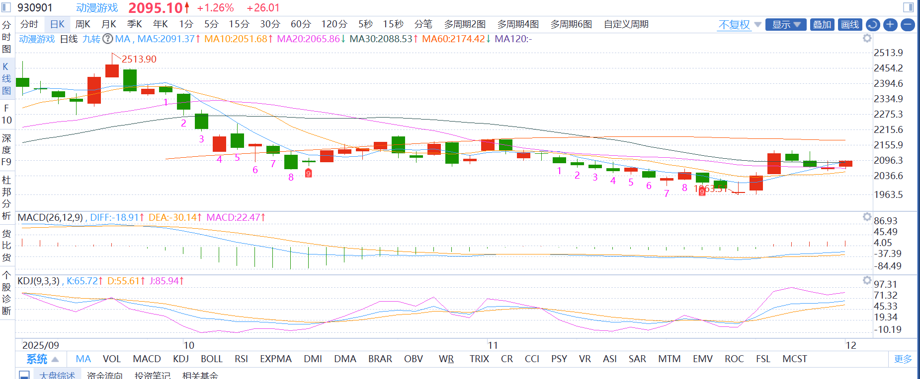 游戏板块:影视传媒板块爆发,《疯狂动物城2》票房破纪录,带动板块情绪。技术面放量突破压力位,日线回踩20日线支撑有效,周线KDJ金叉呼之欲出,周线看涨。麦爸选择持仓看涨。